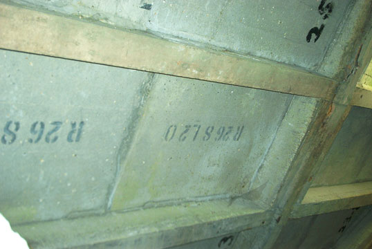 [Click on Image for NEXT] Many of the Concrete panels had ID numbers ie R268L20 (c) www. Concrete Barge .co.uk
