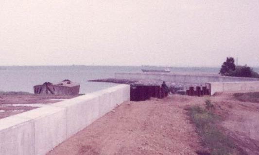 [CLICK on Image for NEXT picture] A closer look at the Barge and the new Sea Wall construction (c) www. Concrete Barge .co.uk