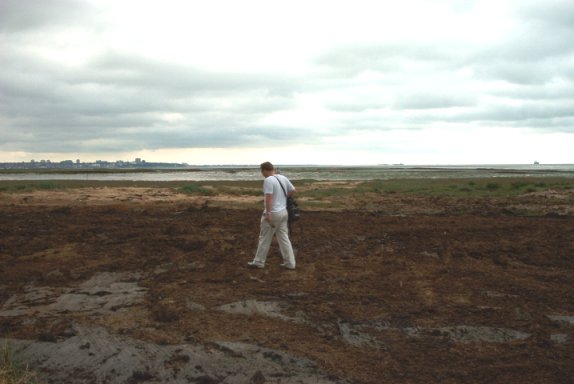 [CLICK on Image for NEXT picture] 7th June 2003 - Jacko arrives at Canvey Point to examine remains (c) www. Concrete Barge .co.uk
