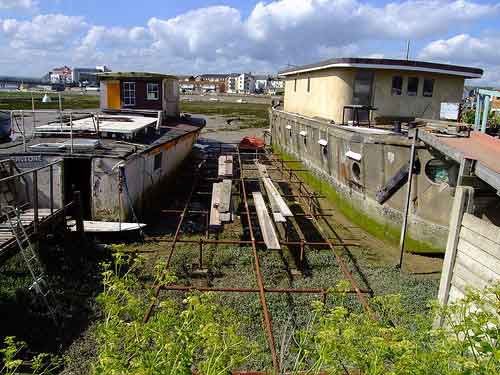 Concrete Barge House Boat on right