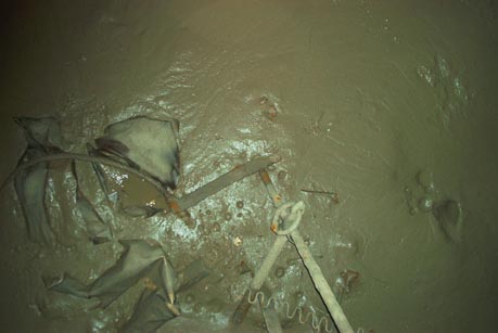 [Click on Image for NEXT] Pointing the Camera through a small hole in the deck we spy down into the Forward Hold